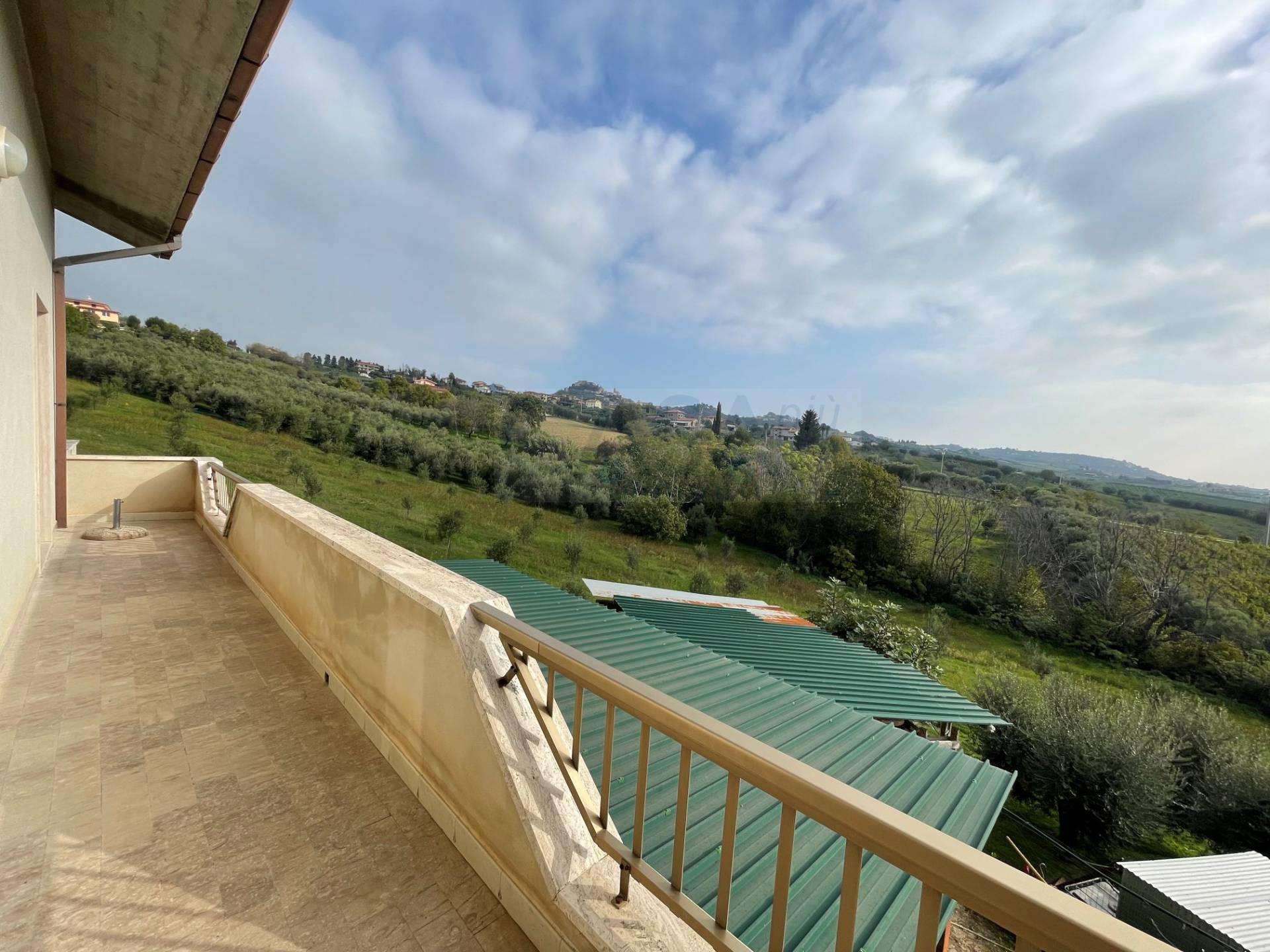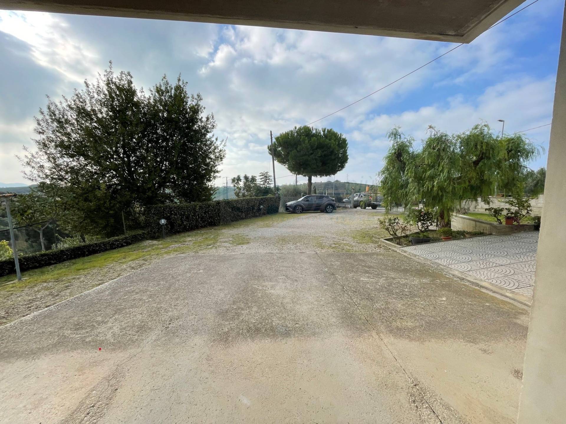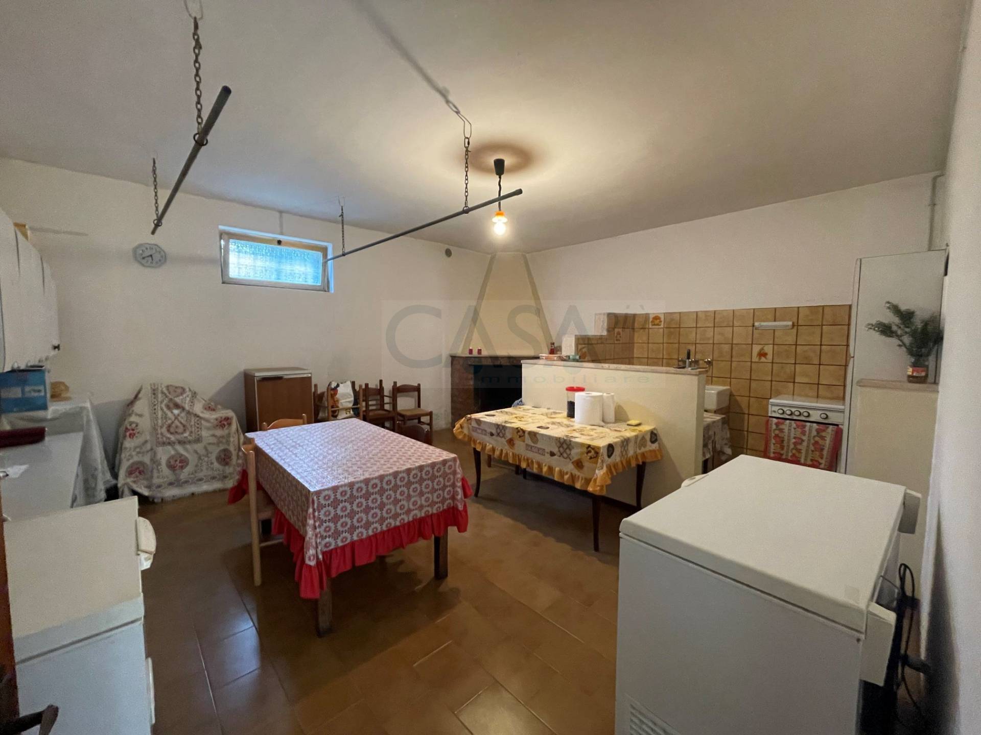 La proprietà offre ampi spazi interni che risultano così distribuiti: piano terra di 156 mq circa con locale cantina, locale dispensa, ripostiglio, bagno oltre ad un garage di 60 mq circa ed una rimessa di 36 mq; l'abitazione al primo piano di 147 mq, accessibile da scala esterna, si compone di: ampio ingresso, un salone, una spaziosa cucina con camino e retrocucina, disimpegno della zona notte con tre grandi camere da letto un bagno con antibagno (ulteriore locale lavanderia). La casa è circondata su tre lati da balconi perimetrali con vista panoramica che dai monti e dalle colline sconfina verso il mare. Attraverso una scala retrattile si accede ad un sottotetto di 147 mq avente altezza max di 2,60 fino ad arrivare ad un'altezza min di 0,60.