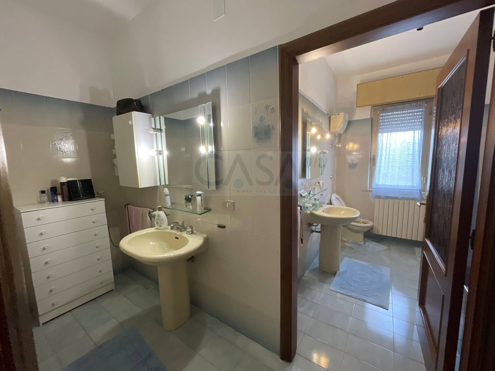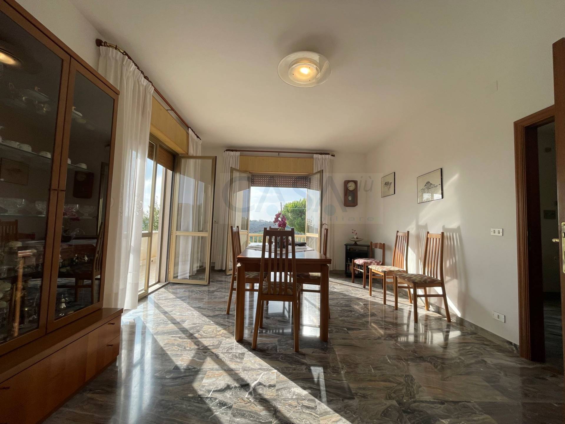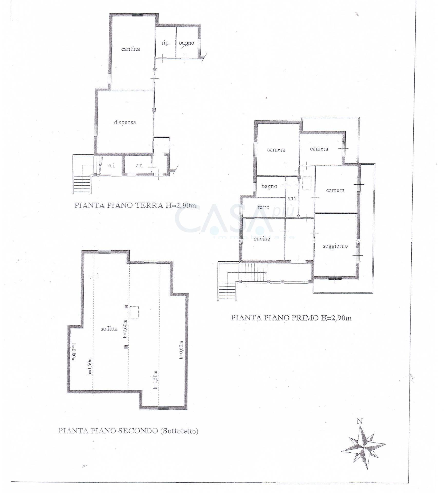 La proprietà offre ampi spazi interni che risultano così distribuiti: piano terra di 156 mq circa con locale cantina, locale dispensa, ripostiglio, bagno oltre ad un garage di 60 mq circa ed una rimessa di 36 mq; l'abitazione al primo piano di 147 mq, accessibile da scala esterna, si compone di: ampio ingresso, un salone, una spaziosa cucina con camino e retrocucina, disimpegno della zona notte con tre grandi camere da letto un bagno con antibagno (ulteriore locale lavanderia). La casa è circondata su tre lati da balconi perimetrali con vista panoramica che dai monti e dalle colline sconfina verso il mare. Attraverso una scala retrattile si accede ad un sottotetto di 147 mq avente altezza max di 2,60 fino ad arrivare ad un'altezza min di 0,60.
