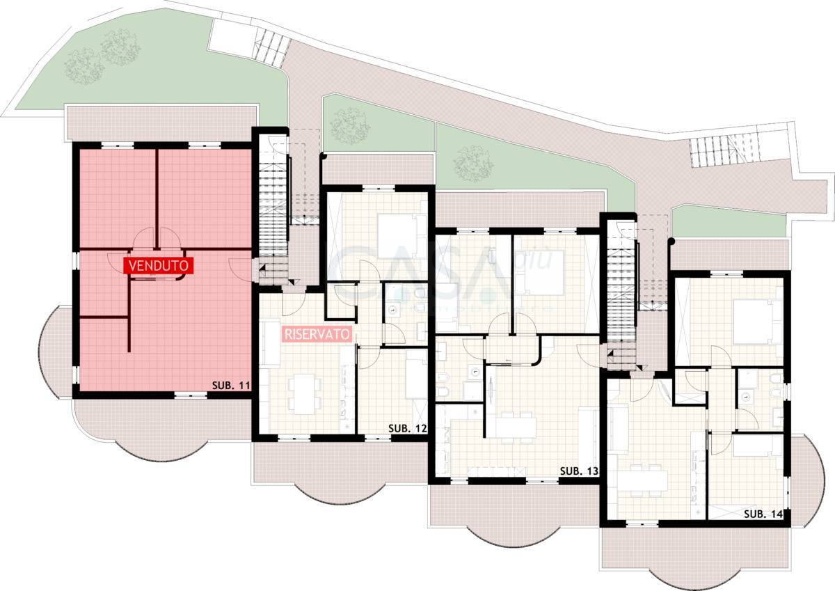 La palazzina di recente costruzione realizzata in muratura con intercapedine isolante interna, si sviluppa su tre piani - terra, primo e secondo - con dieci unità abitative oltre ad un piano seminterrato con garage
