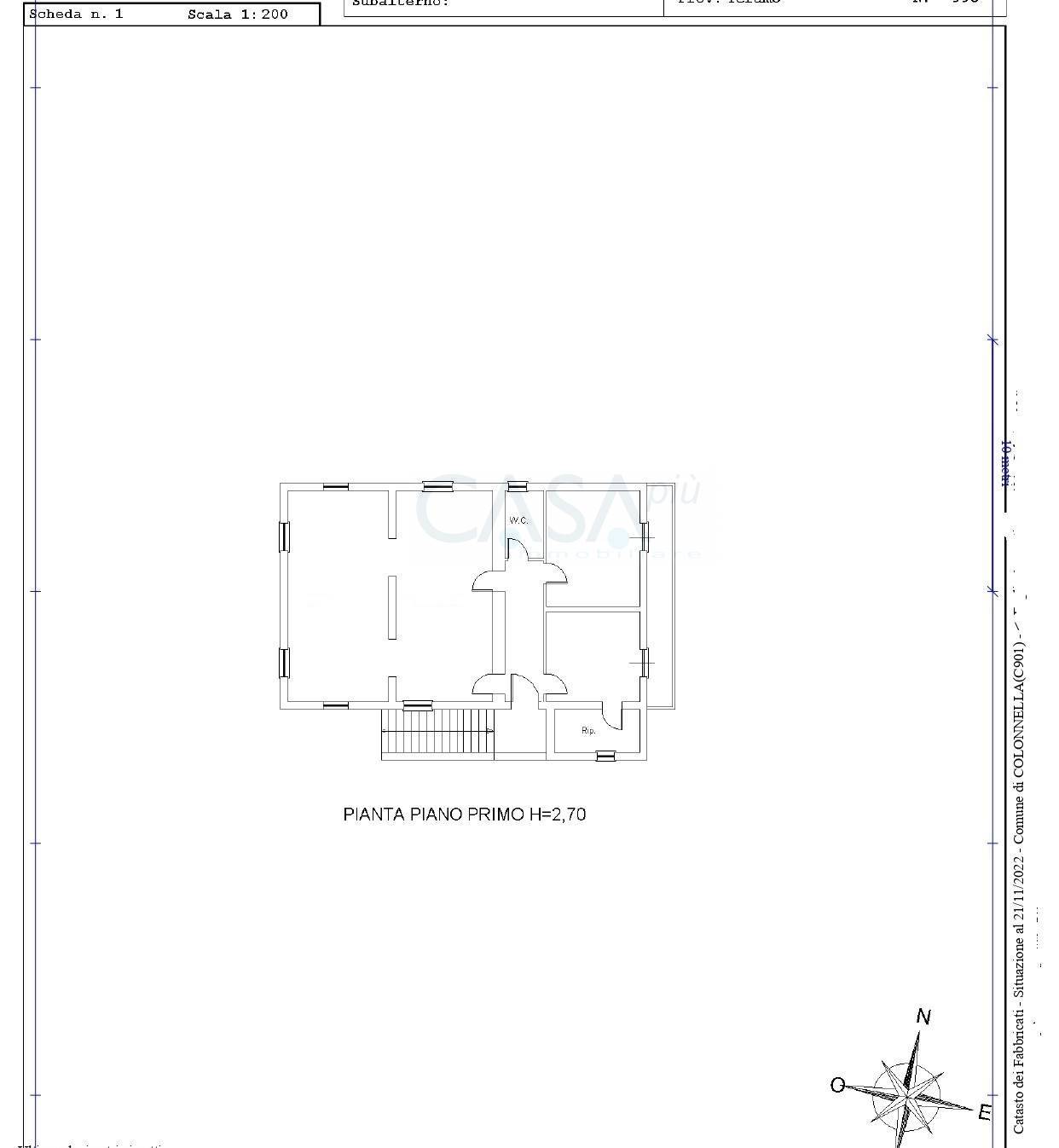 - Piano primo abitativo della superficie di 139 mq circa composto da: ingresso su corridoio, soggiorno/pranzo con camino con affaccio su balcone, cucinotto con finestra, camera matrimoniale sul lato destro, sul lato sinistro troviamo due grandissimi locali collegati tra loro da grandi aperture dove è possibile realizzare quattro camere da letto ed infine un bagno dotato di finestra, una scala retrattile nel corridoio permette l'accesso alla soffitta.