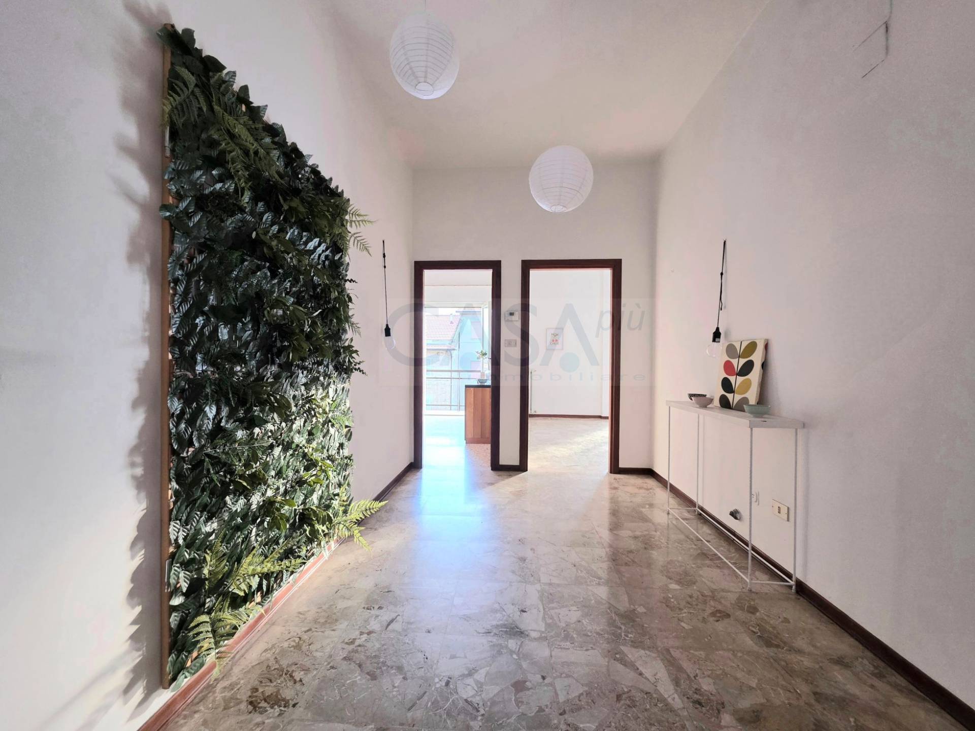 Tutti gli ambienti sono molto ampi, l'ingresso si apre su un grande disimpegno che divide la zona giorno dalla zona notte; la zona giorno, senza dubbio l'ambiente più vissuto e importante della casa, completamente esposta a sud e servita da balcone è composta da un salone per accogliere gli ospiti che ci riserva momenti di svago e di relax, una comoda cucina con retrocucina, una soluzione che offre grande funzionalità e praticità dove l'estetica e l'ordine sono prioritari. La zona notte è composta da tre ampie camere da letto, di cui una dotata di ripostiglio interno con finestra utilizzabile come cabina armadio o bagno, ulteriore locale lavanderia/ripostiglio nella zona notte e bagno dotato di finestra.