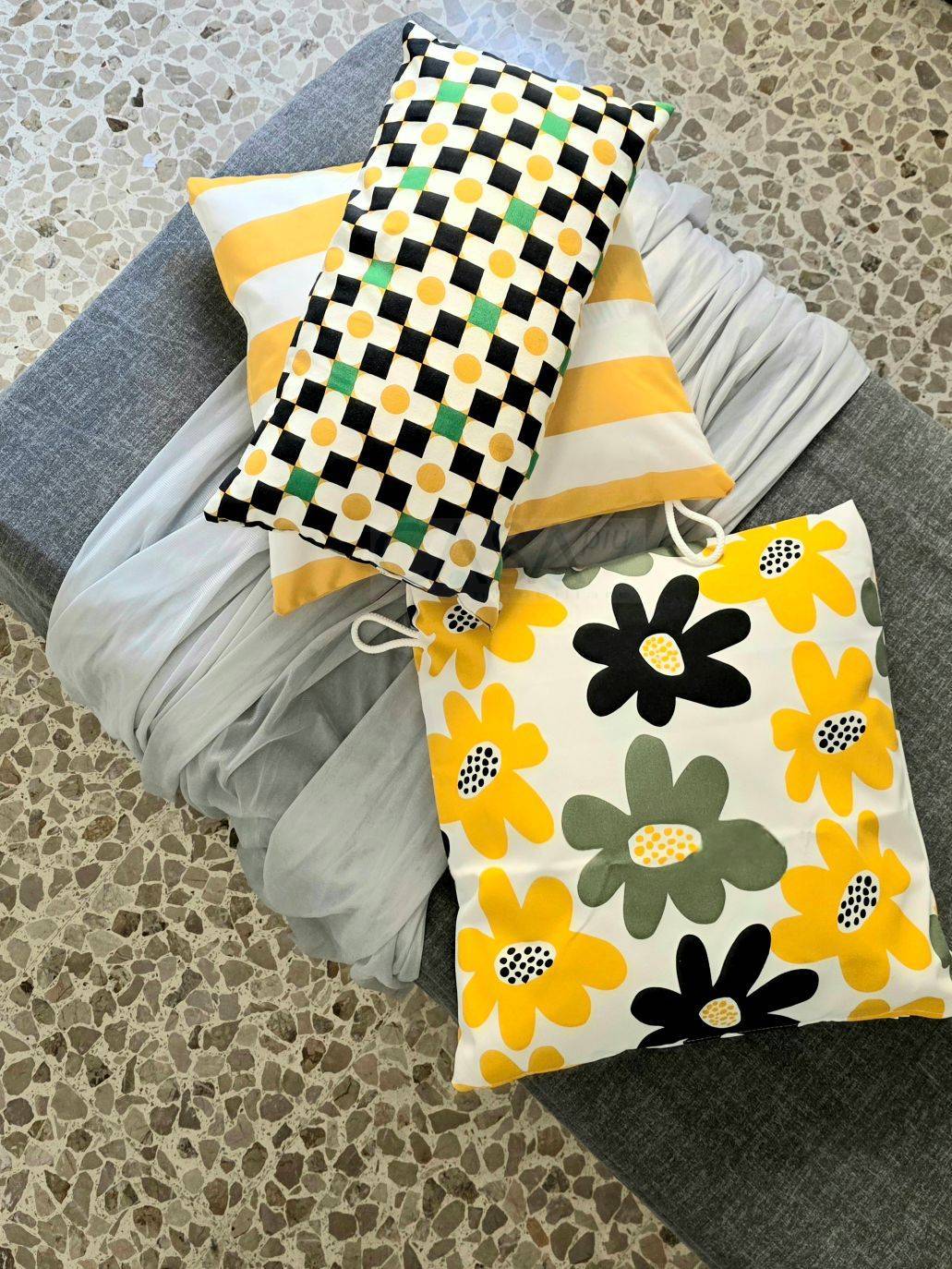 Il pavimento è in graniglia e copre tutta la superficie, molto comune nelle case italiane costruite negli anni 70, levigato e lucidato, molto resistente e durevole è composto da cemento mescolato con frammenti di marmo e pietre di varie dimensioni, più grandi e irregolari nella zona giorno, più fine ed uniforme tipica delle camere da letto.
