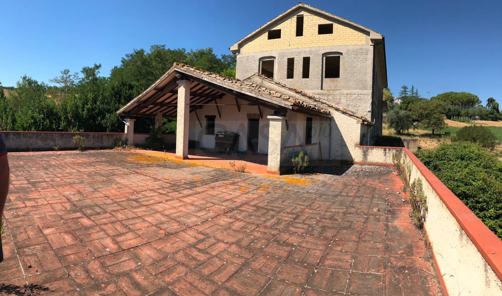 Casolare con terrazza panoramica, in parte da ristrutturare ed in parte da completare della superficie di 500 mq circa circondato da 1 Ha di terreno prevalentemente pianeggiante posizionato in una stupenda posizione dominante sulle colline e sul mare.
