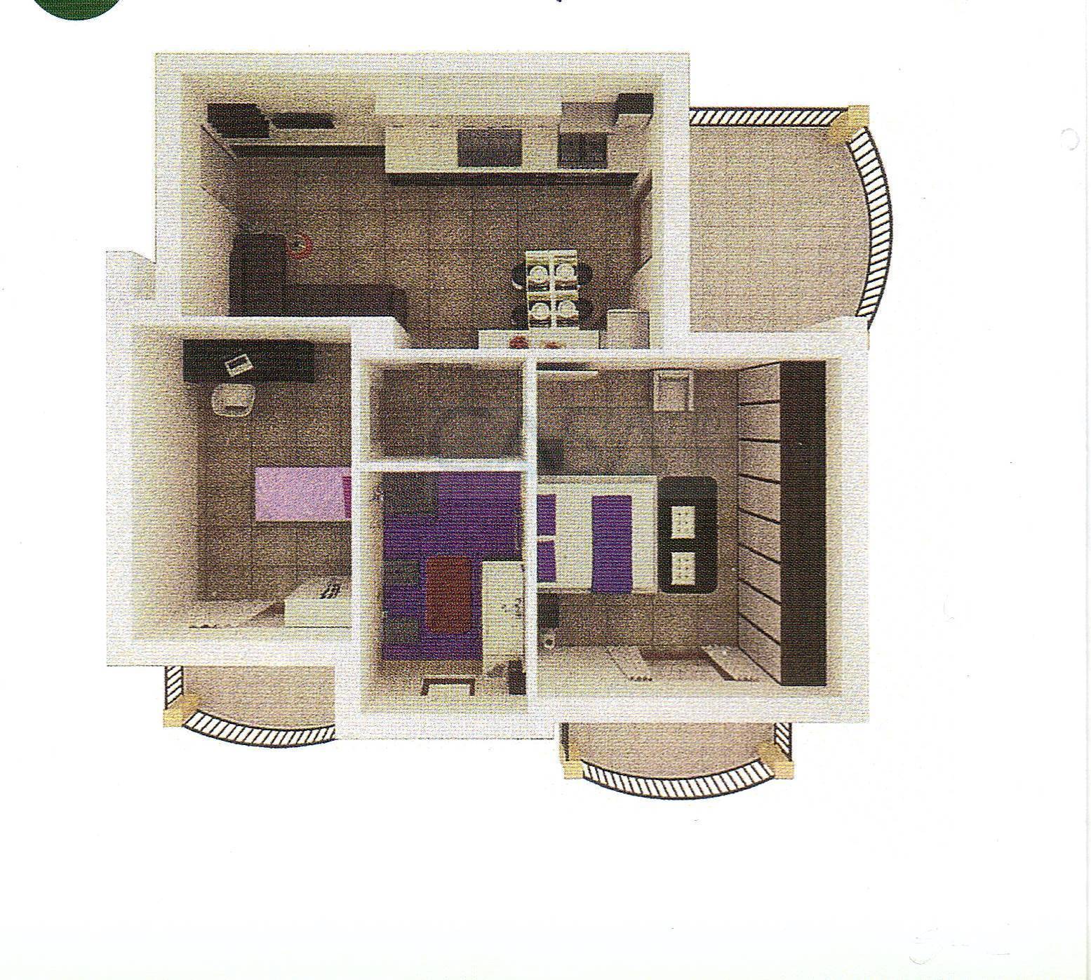L'immobile ha una superficie di 68 mq circa con ingresso su soggiorno/cucina con balcone di 12 mq circa esposto a sud, disimpegno, camera matrimoniale con balcone di 4 mq, una camera singola anch'essa servita da balcone ed un bagno con finestra.